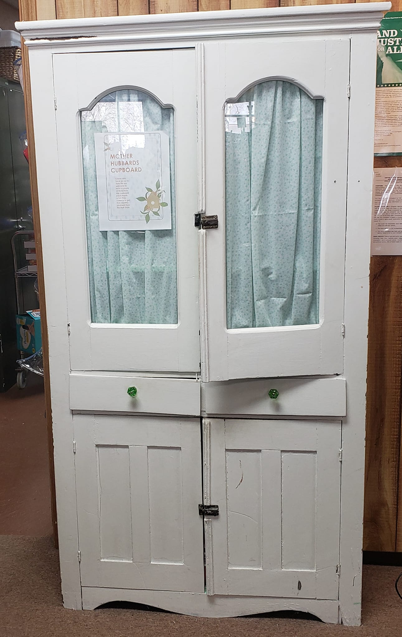 Clients may select 3-4 items from the cupboard each month.